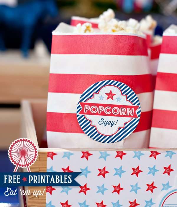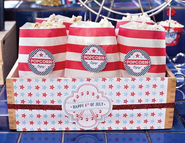 Look! These popcorn bag tags by Hostess with the Mostess are so darling and we love that she used our red rugby stripe favor bags to display them!